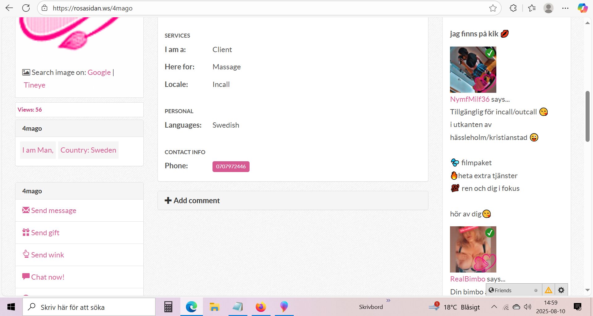 Att tänka på att du många gånger själv valt att publicera informationen om dig själv på olika sidor där kvinnor säljer sex . EX Rosasidan