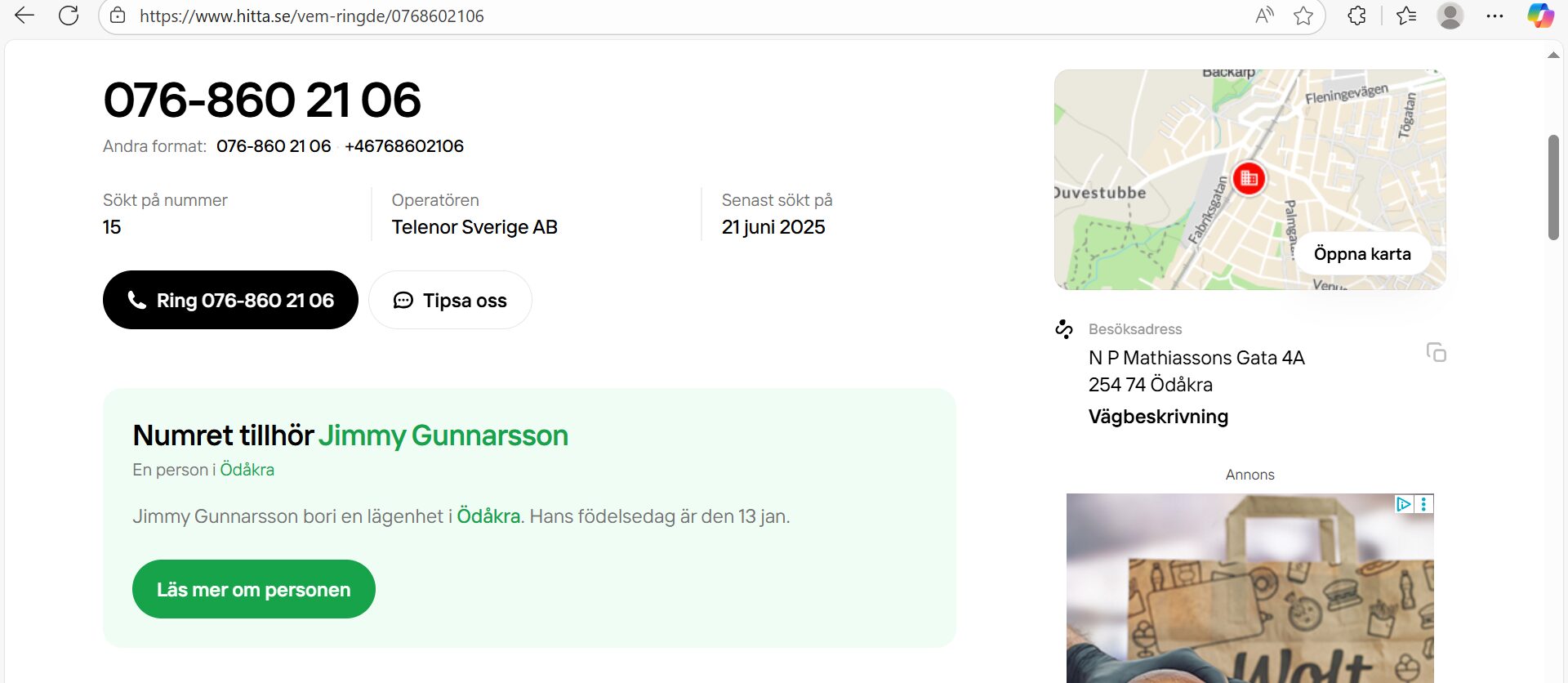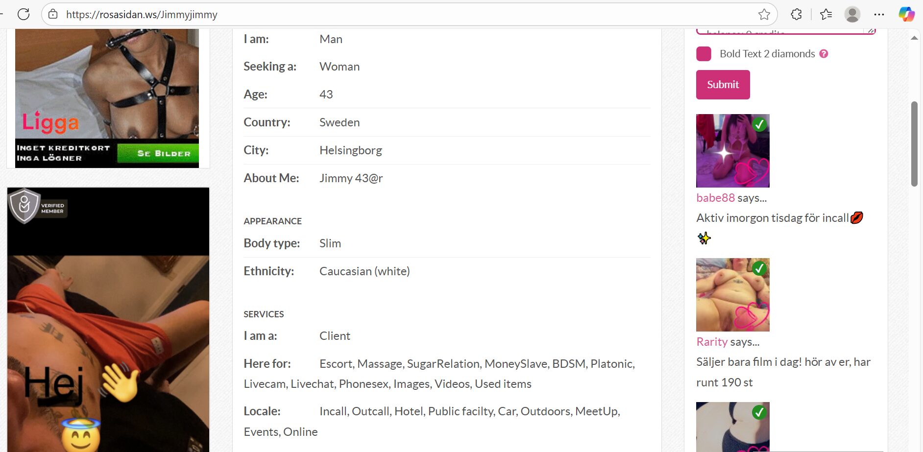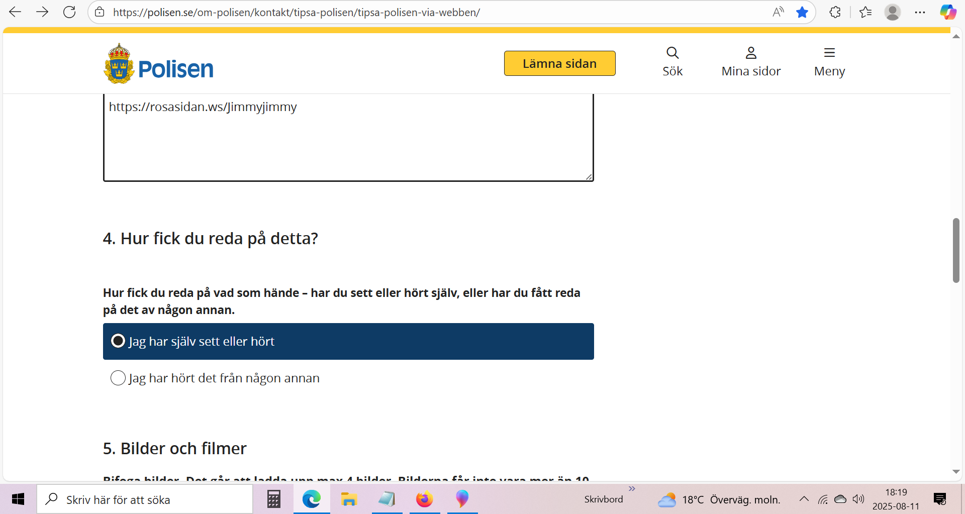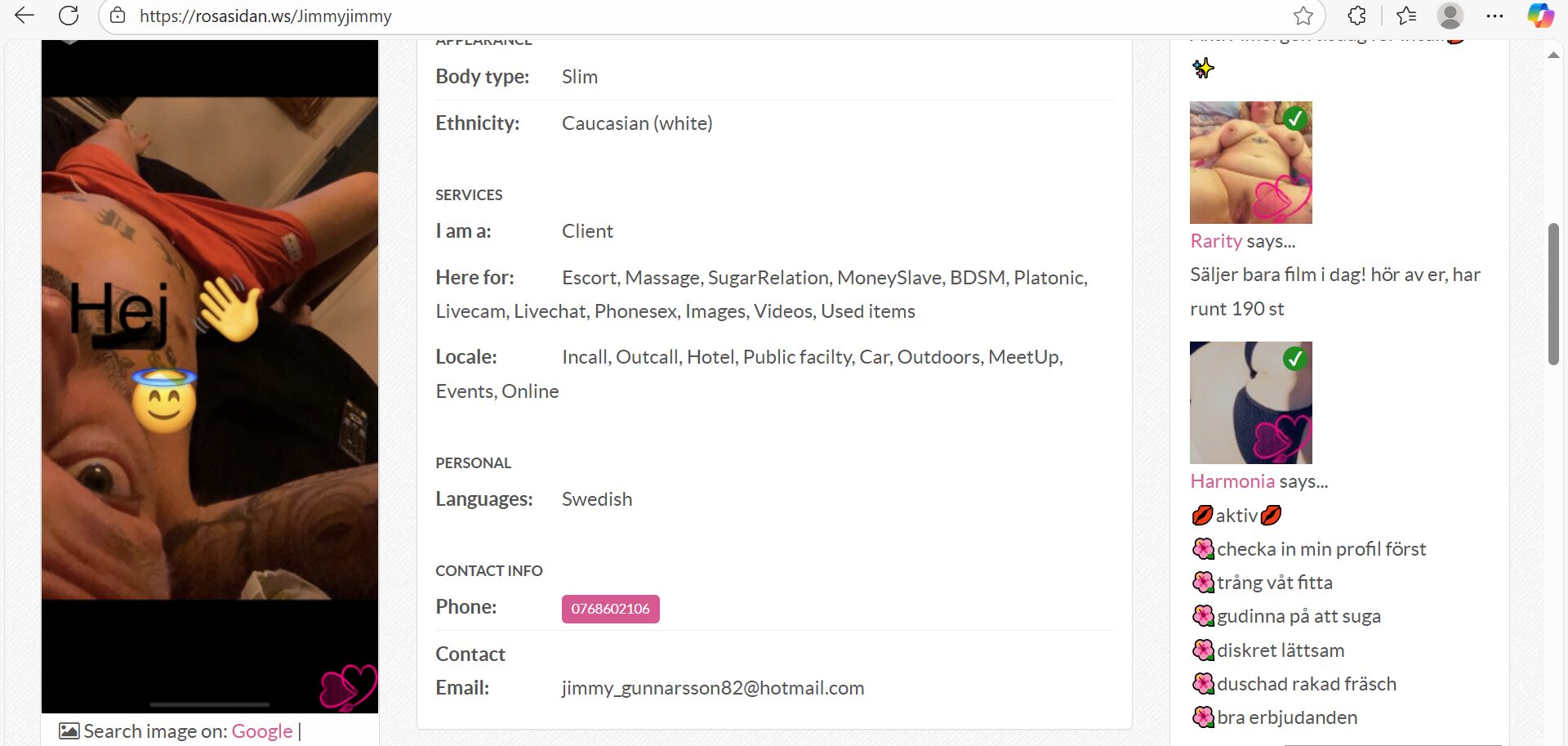 Följande bilder på Jimmy Gunnarsson skickades till Polisen